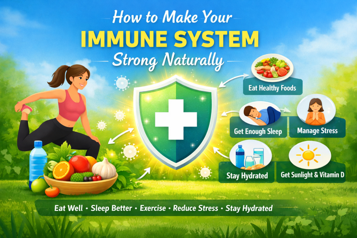 Learn how to make your immune system strong naturally with simple daily habits, healthy foods, better sleep, exercise, and stress management tips for a healthier life.